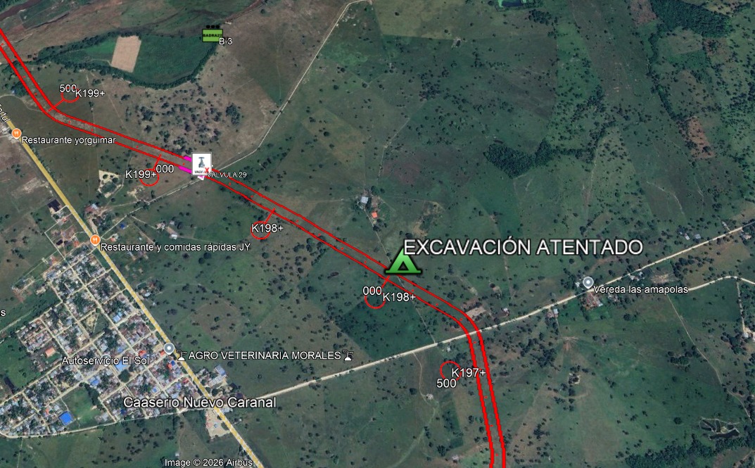 De acuerdo con la información oficial, soldados de la Brigada 18, adscritos a la Octava División del Ejército, detectaron durante labores de reconocimiento aéreo a un grupo de personas que portaban herramientas de excavación en el punto PK 198+, una actividad considerada de alto riesgo y asociada a posibles acciones terroristas contra este activo estratégico del Estado.