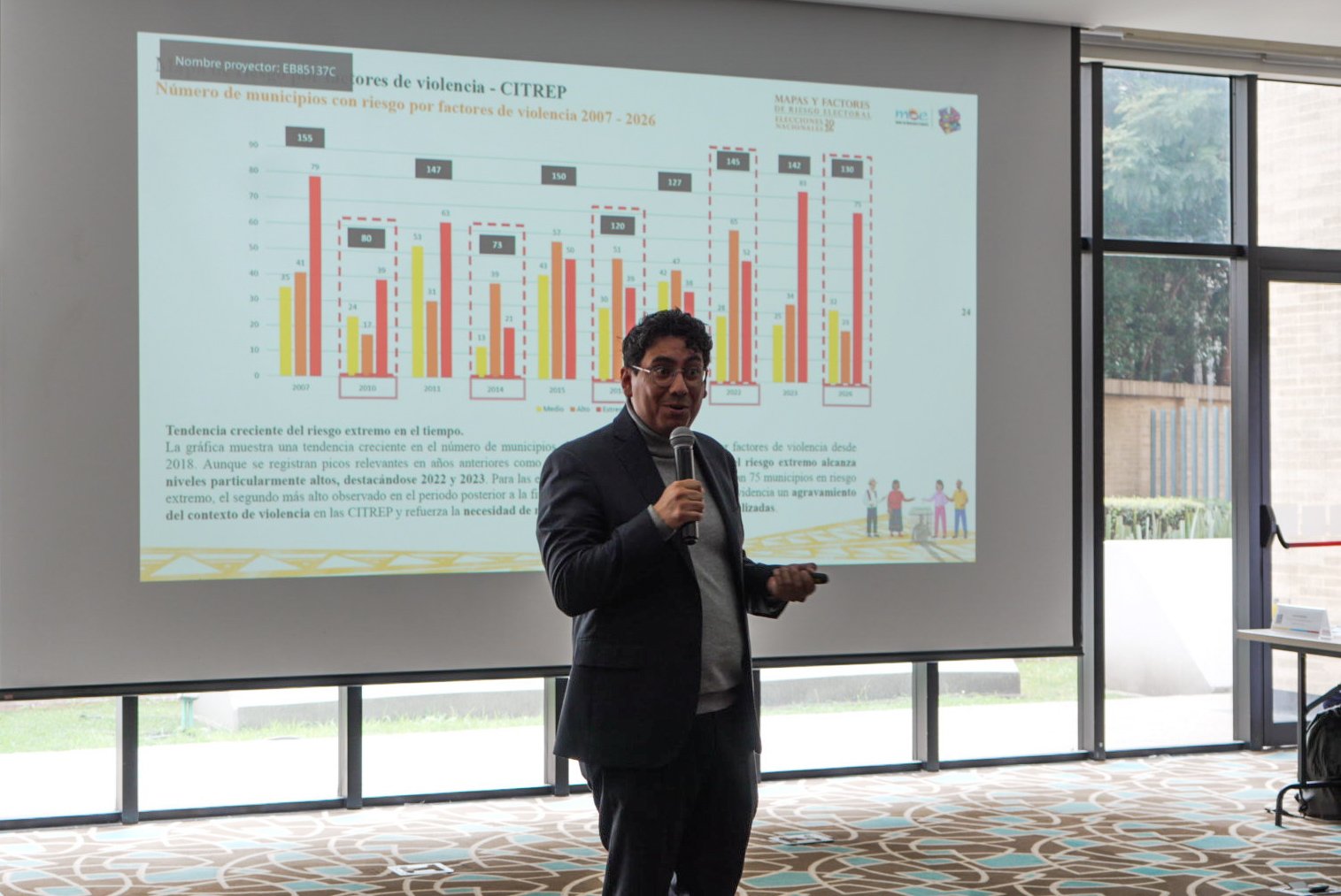 “Las CITREP presentan un panorama complejo de cara a las elecciones de 2026. 103 municipios de los 168 que las componen están en riesgo por coincidencia de factores indicativos de fraude y de violencia, lo que representa el 61,3 % del territorio”, afirmó Diego Alejandro Rubiano, coordinador del Observatorio Político Electoral de la MOE.