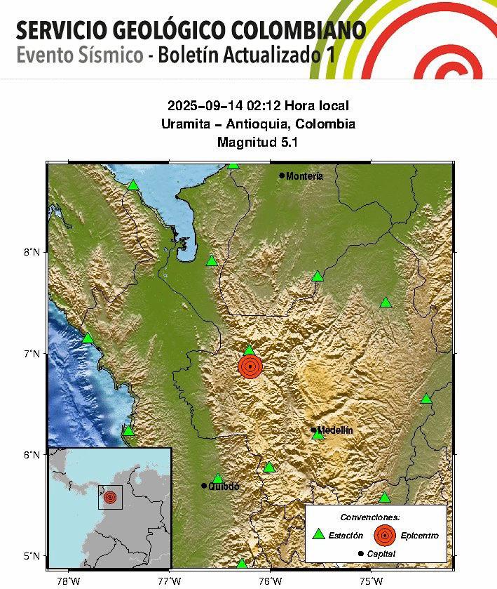 Tres movimientos telúricos, el mayor de 5.1 de magnitud, sacudieron en la madrugada del domingo el occidente antioqueño. El Dagran y los Consejos Municipales de Gestión del Riesgo adelantan verificaciones en Uramita, Frontino y Cañasgordas, donde se registran daños en…