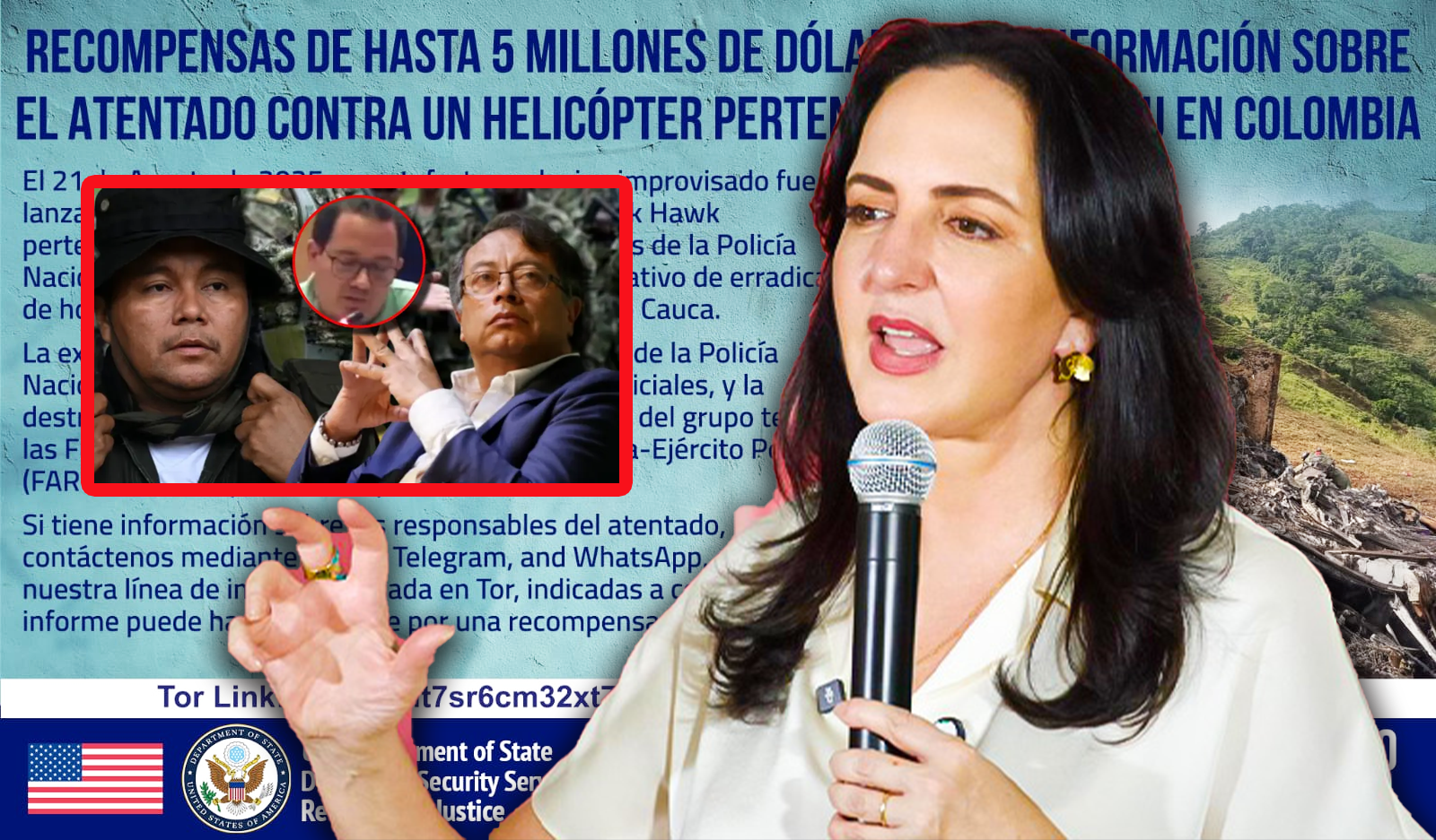 Mientras Estados Unidos ofrece hasta 5 millones de dólares por información sobre los terroristas que derribaron un helicóptero policial en Amalfi, dejando 13 uniformados muertos, el gobierno de Gustavo Petro designó como “gestor de paz” a uno de los presuntos responsables del ataque. La precandidata María Fernanda Cabal denunció esta contradicción como una afrenta a las víctimas y un síntoma de la política de impunidad que, bajo el rótulo de “paz total”, premia a los victimarios en lugar de perseguirlos.